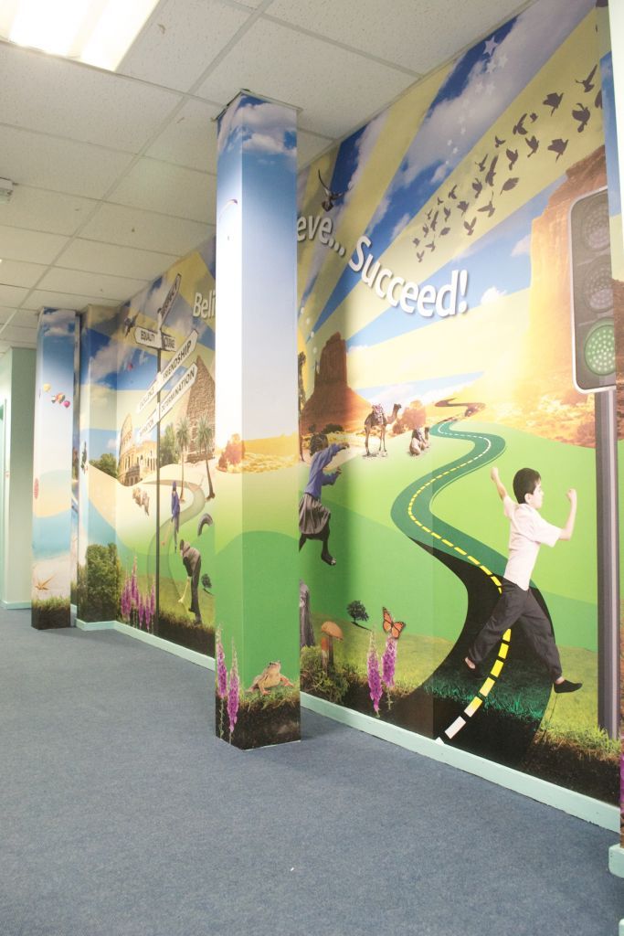 The design ideas featured here cover various transformations of school spaces by producing panel displays, wallpaper, printing on doors, floors, windows, as well as directly onto walls. Various materials, printing techniques and state of the art technology have been used. We often mix materials and techniques to create something original. Make sure you scroll through our gallery to see all of the innovative design solutions for these school areas.