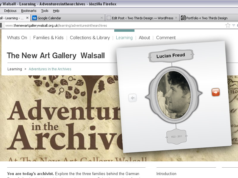 Two Thirds Design worked with Jo Digger, Head of Collections on a series of interactive resources which gives the user the role of detective as they explore through the letters, photographs and diaries in the archives.
