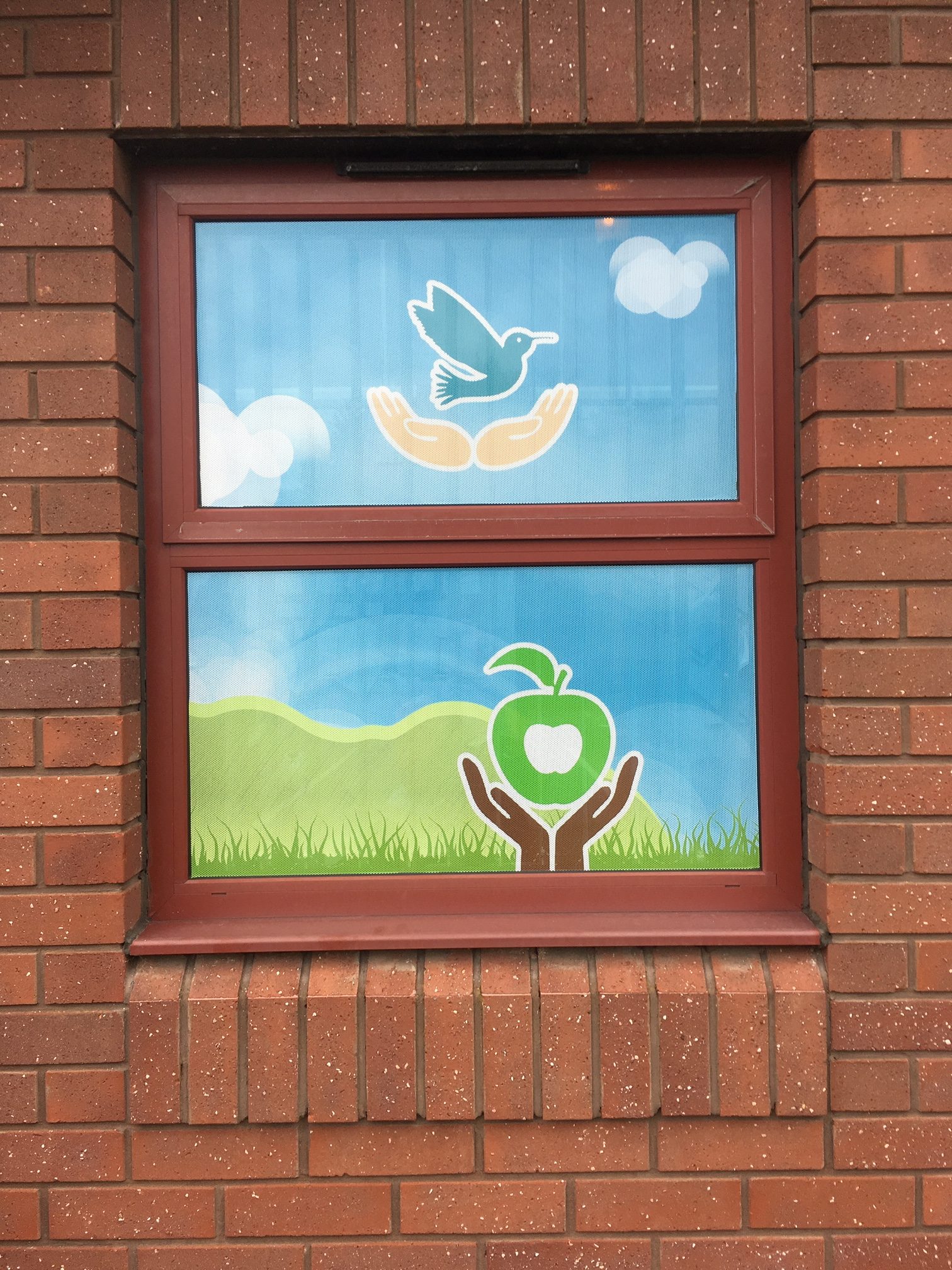 The brief: To transform the school entrance windows and foyer into a welcoming display that also aids privacy and reflects the school’s ethos.