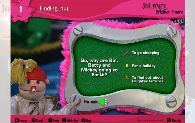 Our work on this project included the creation of space scenes using photographs of the puppet characters featured within the video clips, as well as animating backdrops and creating fun user-friendly navigation.