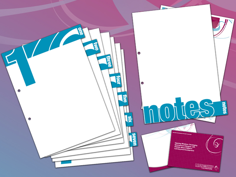 A substantial education resource pack for early years practitioners. The solution required a package design to amalgamate existing documentation and training materials covering several projects. The final design style is professional yet elegant and creates a clean and simple solution which is easily applied with consistency through the packs diverse contents ranging from handout templates to PowerPoint presentations.