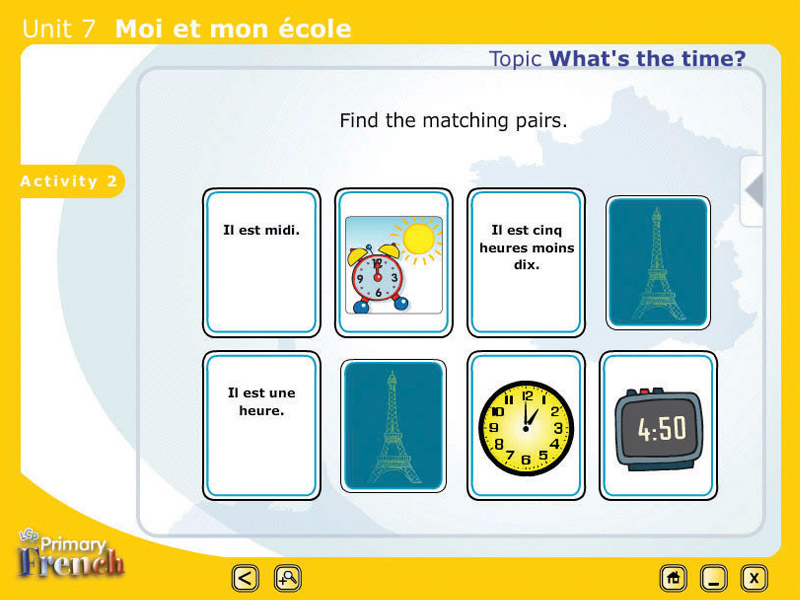 The brief required the design of a range of engaging interactive games for classroom use, using authentic French voices. The design challenge was to maximise learning in creative ways using our expertise in interactive technology. As well as providing education through reinforcement, the games provide teachers with a tool for classroom assessment. The end product is a successful, dynamic resource that can be used time and time again.