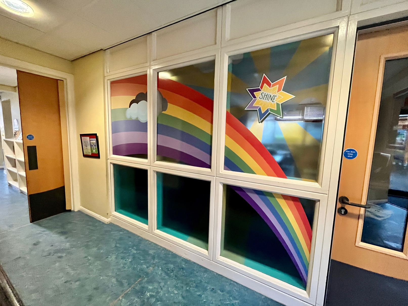 The end result: We created a cohesive theme, with updatable and permanent displays for pupils and staff. The new school value icons as well as the branded motto were applied consistently across external and internal signage, an updatable school value boards, stained glass effect window vinyls and frosting. Assisting the whole school in living out its Distinctive Christian Vision.
