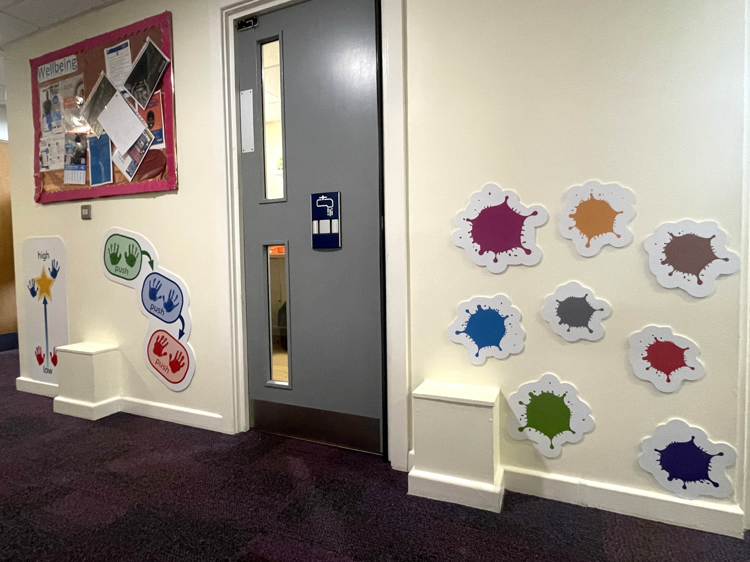 From initial concepts through to production and installation, our goal was to transform underused corridors and shared spaces into purposeful environments full of colour, interaction and joy.
