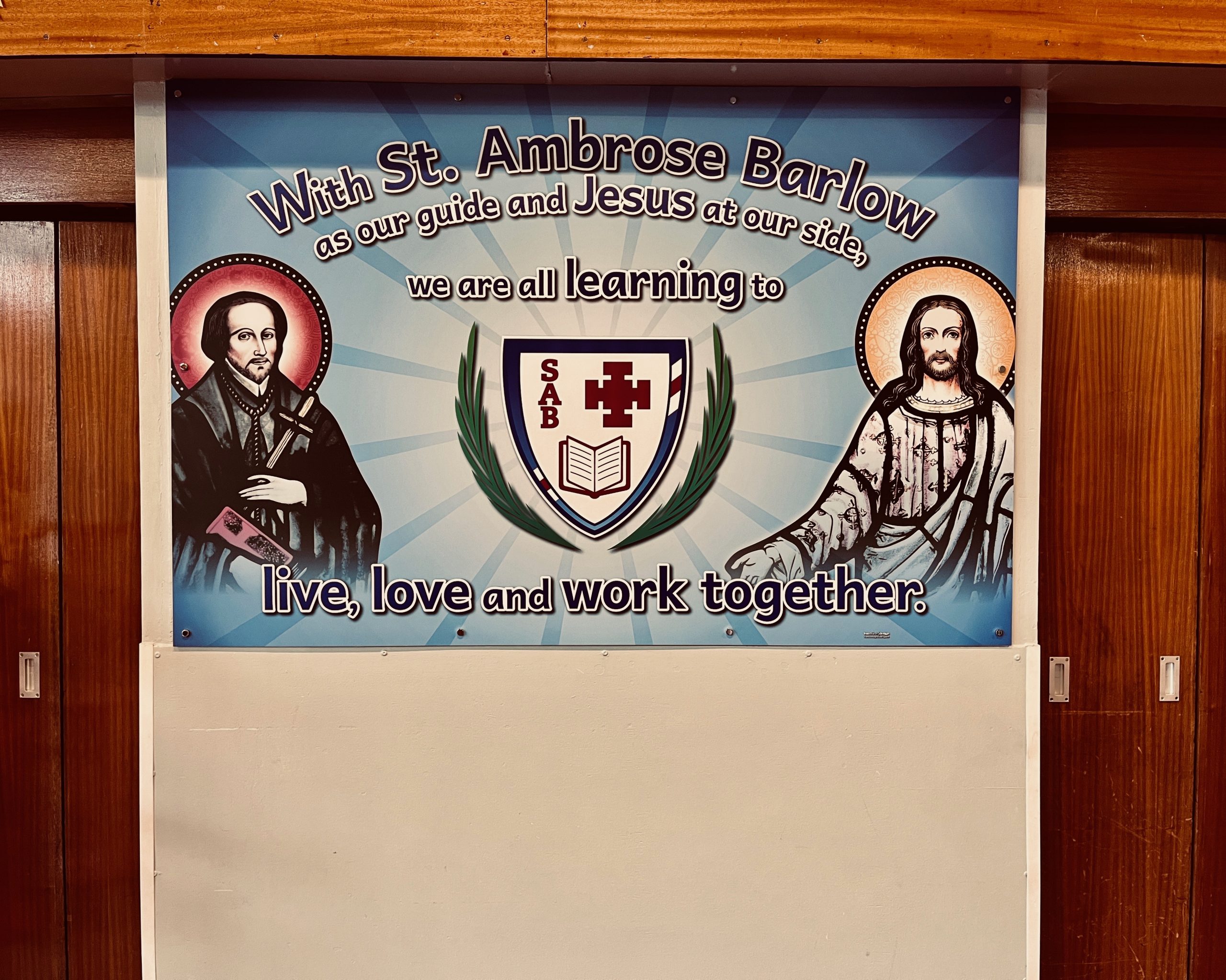The brief: Whole school entrance and hall transformation. Promoting the Catholic life of the school.