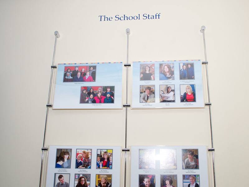 A creative, update-able Staff display using A4 acrylic poster pockets to house the professional photography taken at the school.