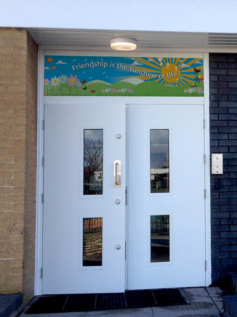 Ideal for transparent and opaque window vinyl displays in a reception entrance area.